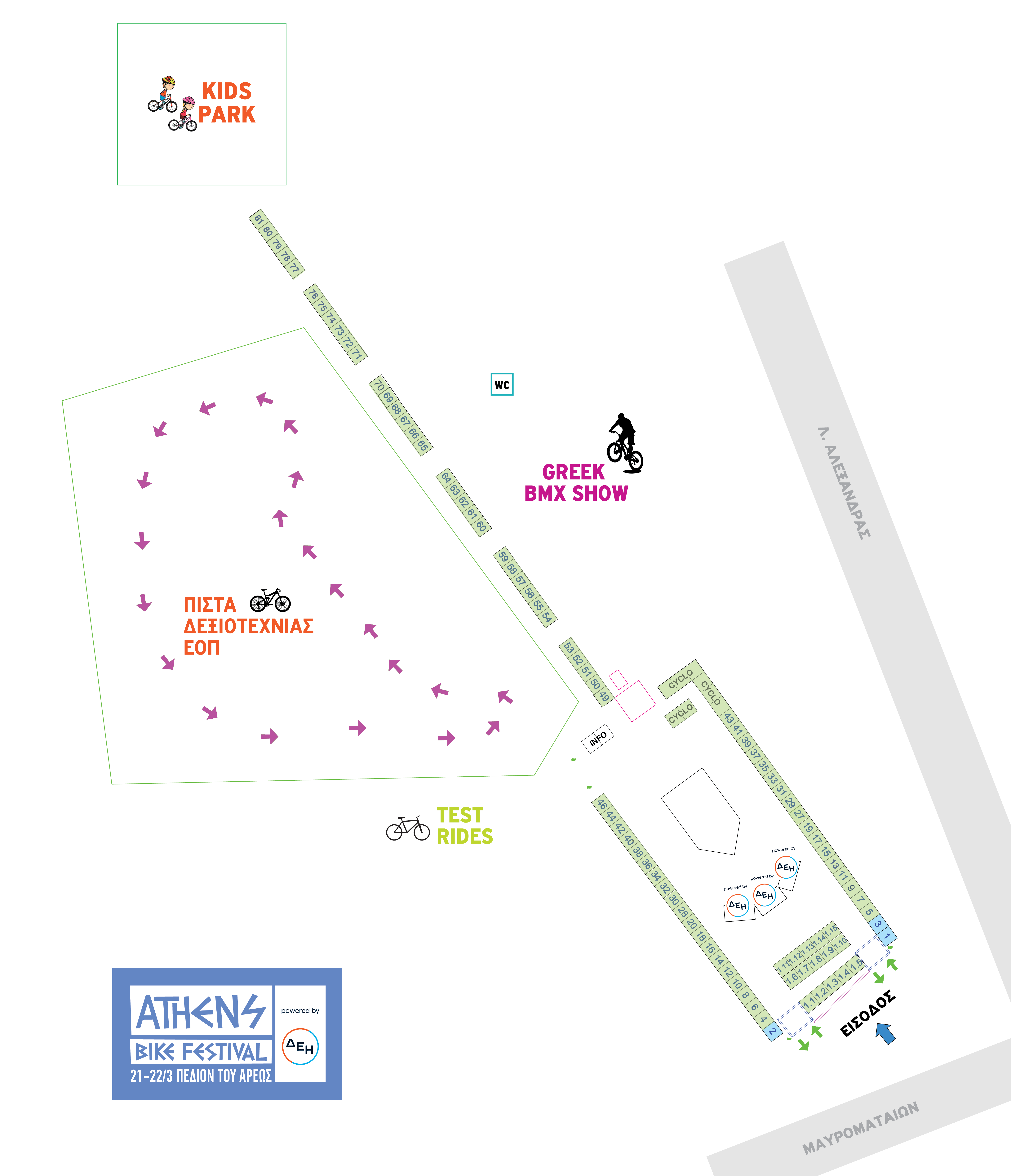 Η συμμετοχή γίνεται είτε με ανοιχτό χώρο, είτε με ειδικά κατασκευασμένα περίπτερα και υπόκειται στους κανόνες λειτουργίας του Athens Bike Festival powered by ΔΕΗ.